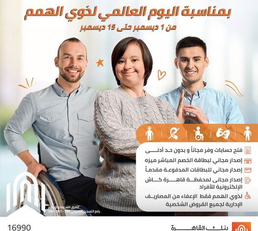 “بنك القاهرة”يقدم لعملائه مجموعة خدمات مجانية ، تزامنًا مع اليوم العالمي لذوي الهمم