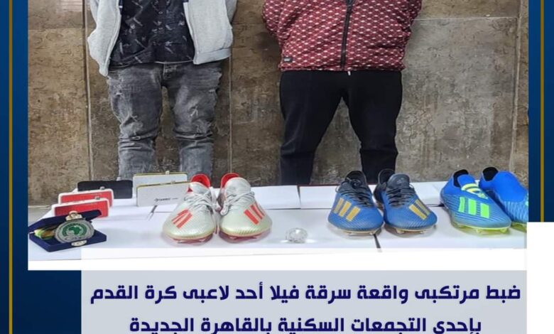 كشف ملابسات ما تبلغ للأجهزة الأمنية بمديرية أمن القاهرة بتاريخ (12) مارس الجارى من مدير أعمال أحد لاعبى كرة القدم بإكتشافه سرقة بعض محتويات الفيلا الخاصة باللاعب المذكور الكائنة بإحدى التجمعات السكنية بالقاهرة_الجديدة.