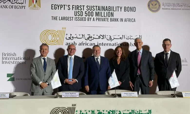 أطلق البنك العربي الإفريقي الدولي “AAIB”، الأحد، سندات استدامة بقيمة 500 مليون دولار، باستثمارات مقدمة من مؤسسة التمويل الدولية “IFC”، والبنك الأوروبي لإعادة الإعمار والتنمية “EBRD”، والمؤسسة البريطانية للاستثمار الدولي “BII”، وتهدف هذه السندات إلى تعزيز تحول مصر إلى الاقتصاد الأخضر، ودعم المشروعات المتوسطة والصغيرة ومتناهية الصغر.